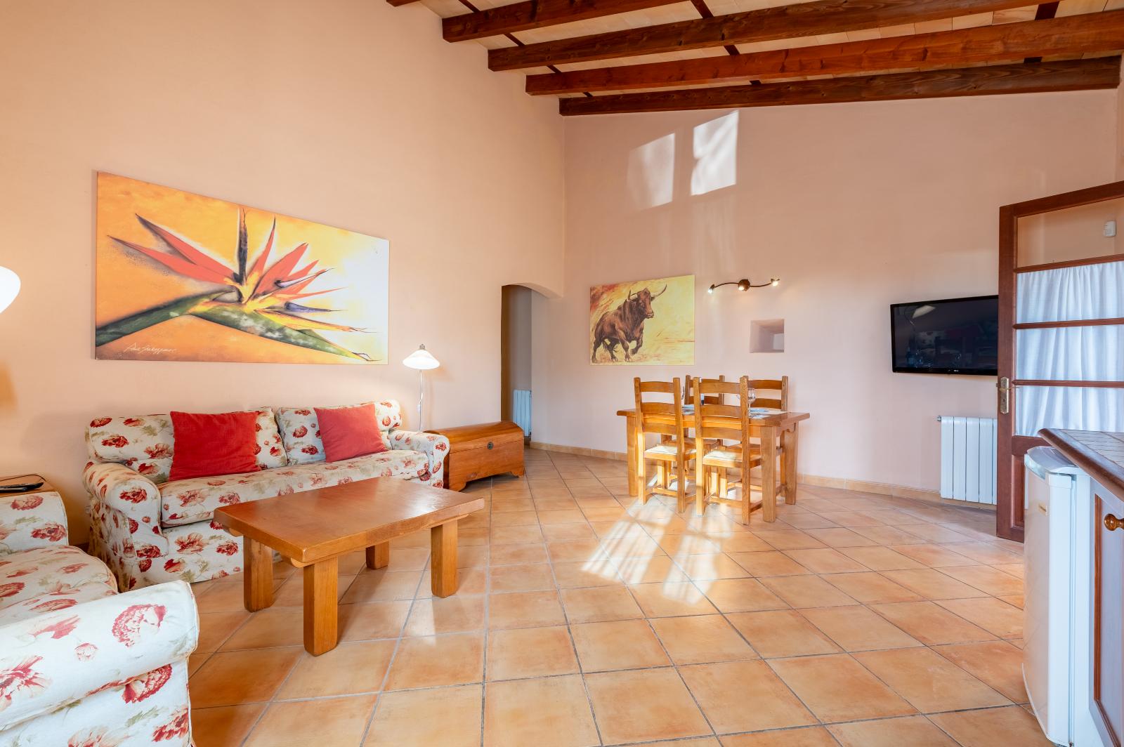 Enjoy the serenity of Mallorca in this spacious 2-bedroom apartment with a private terrace, part of Agroturismo Son Sampoli by MHR in Llucmajor. With 60 m² of space, this apartment is perfect for families or groups of friends looking to unwind in a natural setting.
